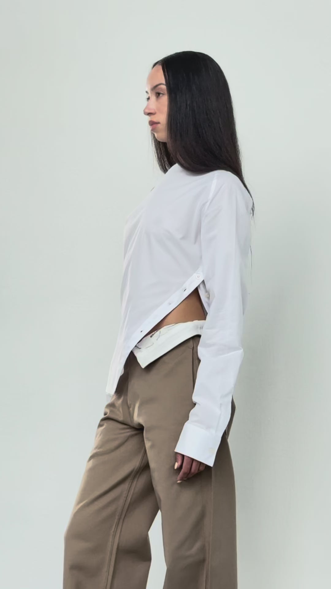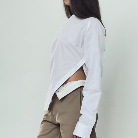 Open Shoulder Shirt is cut with an asymmetric design and off-shoulder detail.